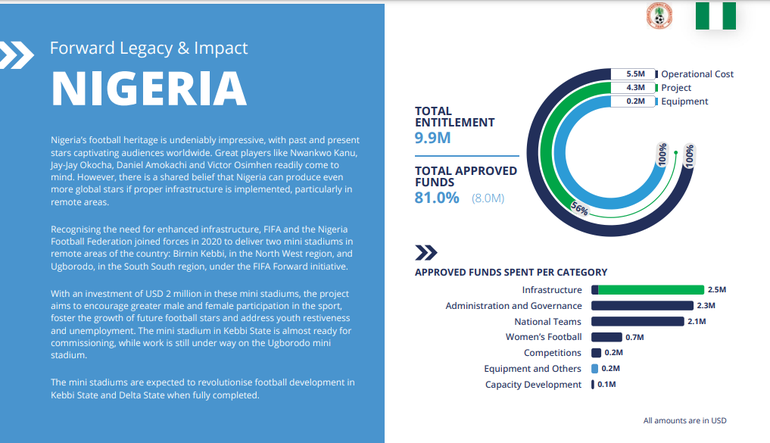 In the period of 2016 to 2022, the Nigeria Football Federation (NFF) received funding to the tune of $8 million from world football governing body FIFA.