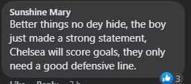 “Better things no dey hide, the boy just made a strong statement, Chelsea will score goals, they only need a good defensive line,” said another fan identified as Sunshine.