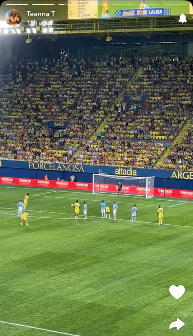 Just days later, she was back in Spain, this time to cheer Pepe on from the stands as Villarreal faced Atletico Madrid in their LaLiga opener at the Estadio de la Cerà mica.