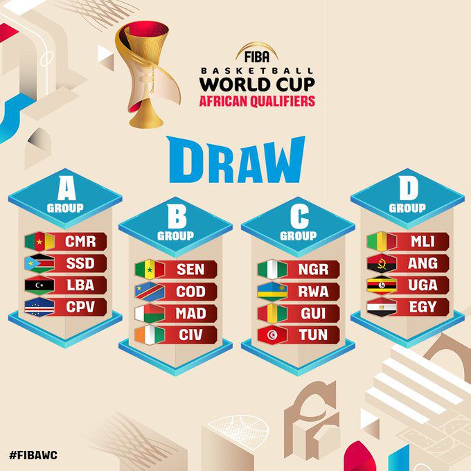 Group A includes Cameroon, South Sudan, Libya, and Cape Verde, bringing together a mix of established and emerging basketball nations.