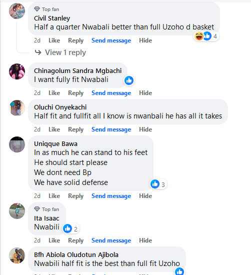 Fans on Pulse Sports Nigeria's social media page have stated clearly that a half-fit Stanley Nwabali is better than Francis Uzoho and that they would rather have Nwabali on crutches playing in goal than trust Francis Uzoho.