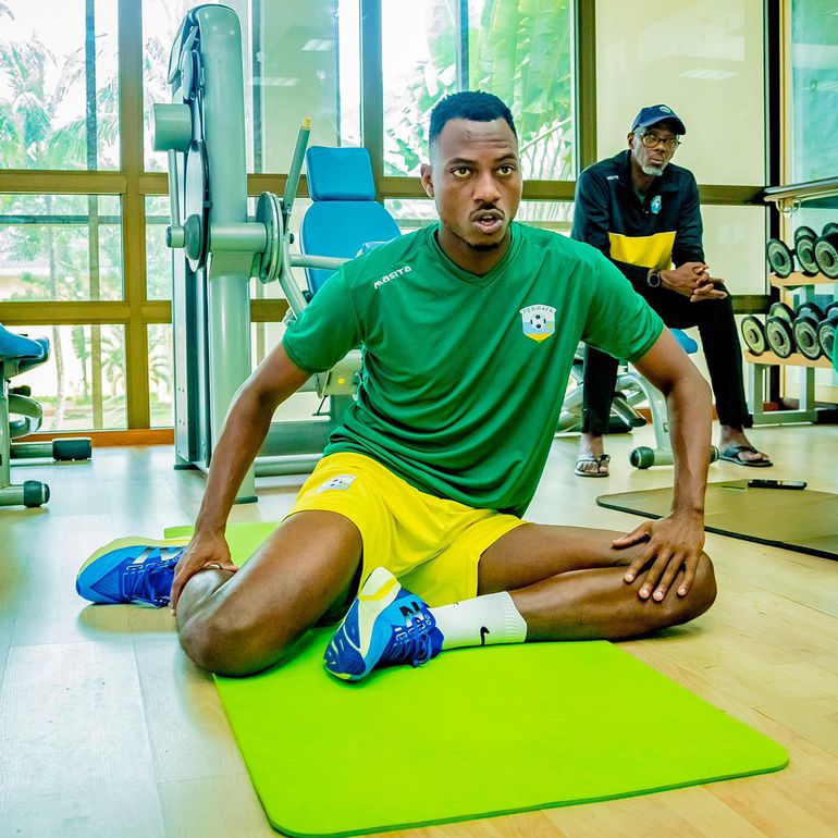 The photos on social media from the Rwanda Football Federation show the players engaging in a series of stretching and strength exercises.