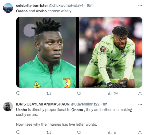 According to Super Eagles of Nigeria fans, Uzoho will hold the team back from winning the AFCON, and they compared him to Cameroon goalkeeper Andre Onana, who is struggling for Premier League giants Manchester United.