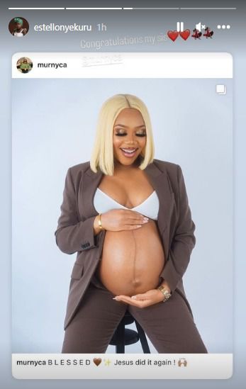 Estelle who is the wife of Adana Demirspor Henry Onyekuru, sent a message to Monica via her official Instagram story posting the beautiful baby bump post with a message that read: ‘Congratulations my sis @murnyca’ followed by two heart emojis.