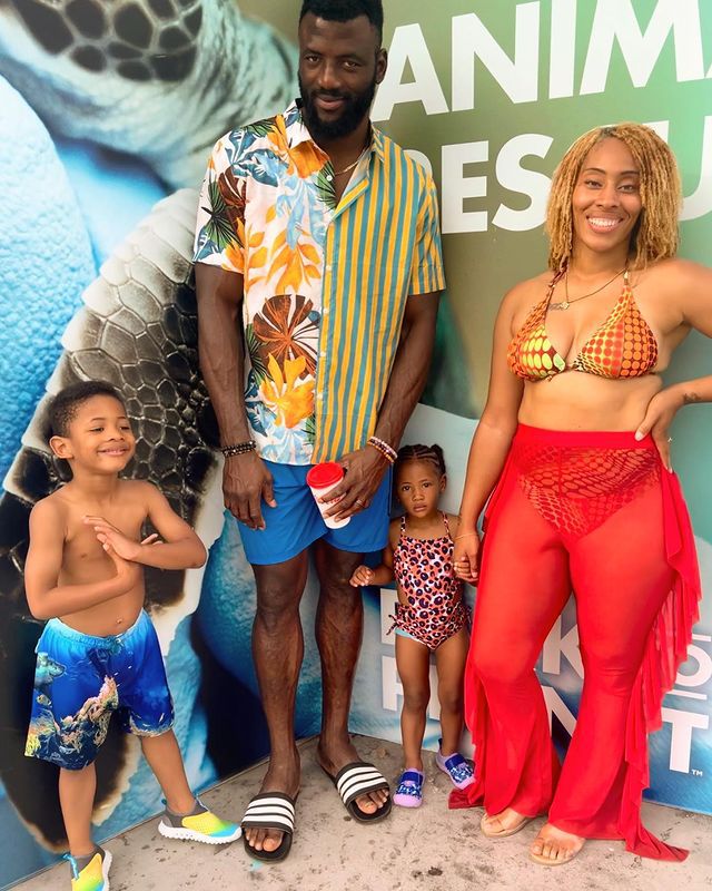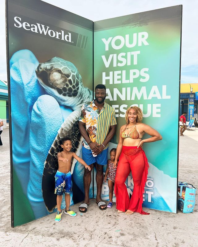In the post by his wife, Tiya Renee, Ajagba and their kids were spotted at the beach in a celebratory mood.