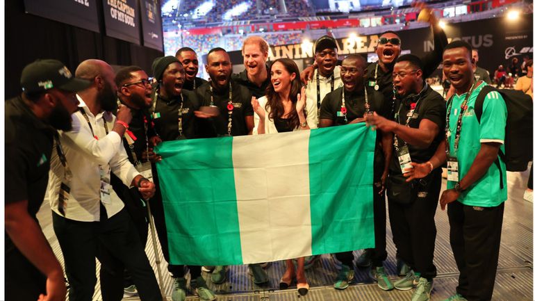 Team Nigeria and the national flag were used as props in a photo of Prince Harry and Meghan.