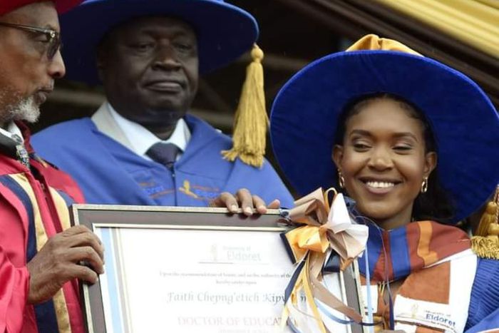 The 30-year-old shared a post on her Instagram handle: “Dr. Faith Kipyegon 🎓😍🙏. I am greatly honored to receive an honorary Doctorate degree in Education from The University of Eldoret. 🙏.”