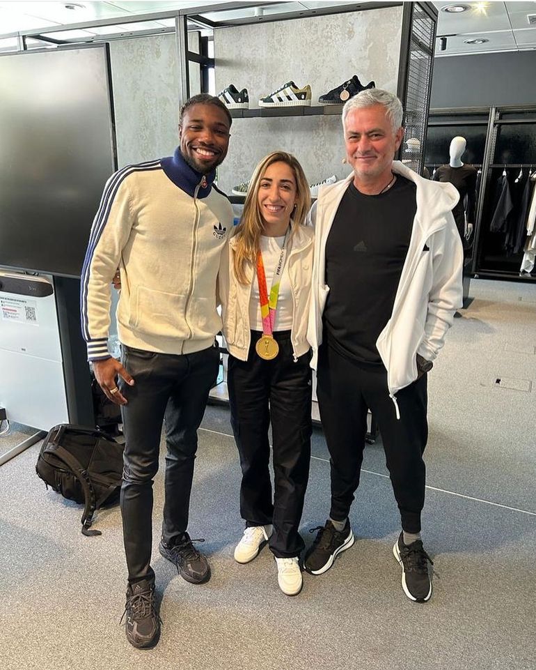 Track and Field's current most popular world champion Noah Lyles, met with football Roma boss Jose Mourinho and Spanish World Cup heroine Olga Carmona at the Adidas family celebration.