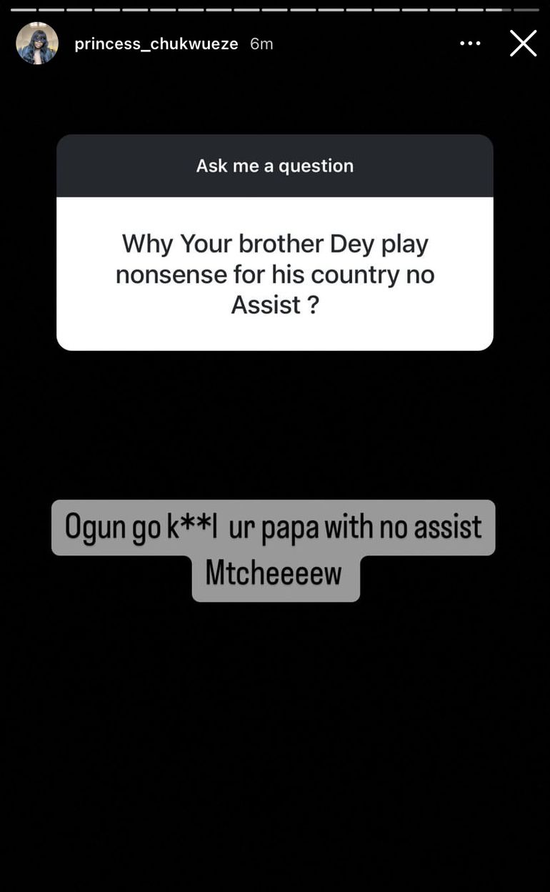 Moreover, Chukwueze’s sister did not stop at merely defending him.