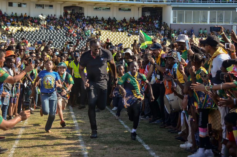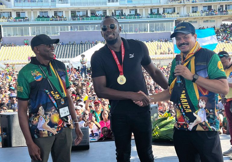The Trelawny Multi-purpose Stadium was rocked by thunderous cheers when the fastest man in the world showed up on Wednesday afternoon as participants greeted him in excitement.