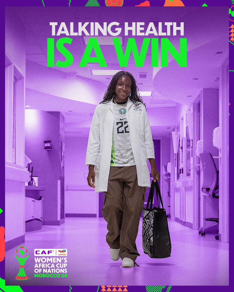Michelle Alozie, another Super Falcons standout, represents the modern African woman balancing passion with purpose. A graduate in Molecular Biology, Alozie has gained attention not only for her performances on the field but also for her role as a health professional, once donning a lab coat layered over her national team jersey, symbolising dual excellence in science and sport.