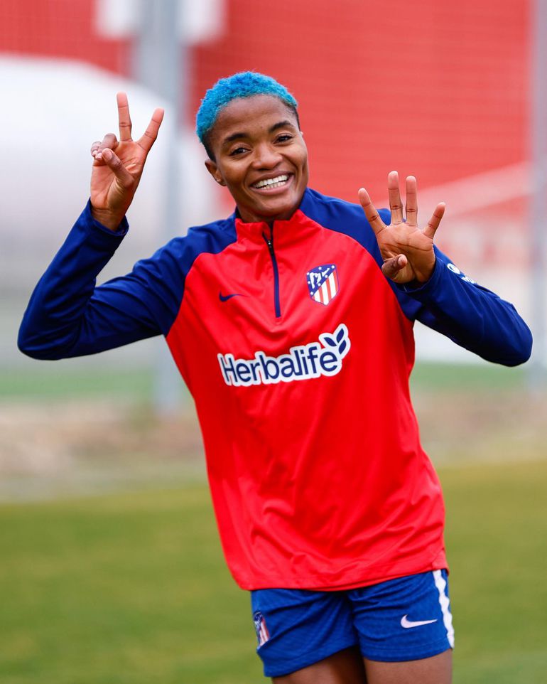 Atletico Madrid Feminino posted photos of Ajibade in training holding up a sign signalling the year 2024.