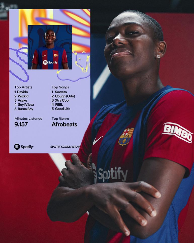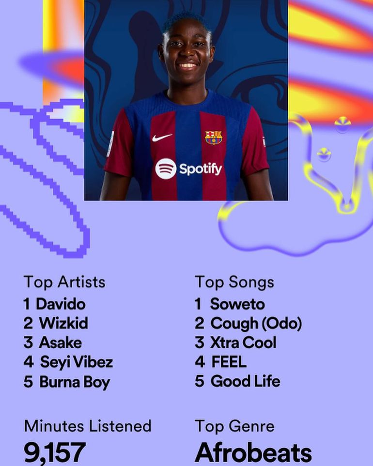 Oshoala and Spotify: Barcelona star has Davido, Wizkid and Asake on top in 2023