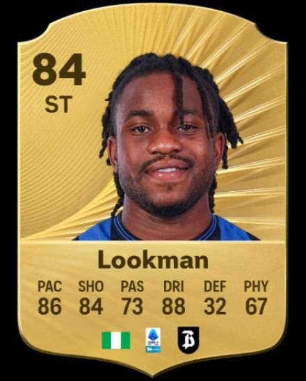 Completing the trio is Atalanta's Ademola Lookman, who is placed 224th with an 84 overall rating. His card reflects his attacking prowess with 86 pace, 84 shooting, 73 passing, 88 dribbling, 32 defending and 67 physicality.
