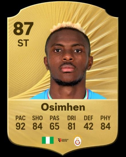 Galatasaray striker Victor Osimhen leads the Nigerian team, securing the 78th spot with a downgraded overall rating 88 to 87, according to EA.