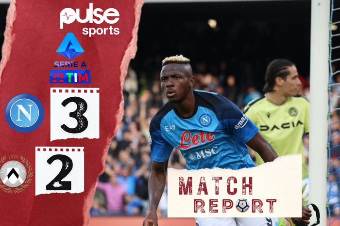 Napoli raced into a 3-0 lead with goals from Osimhen, Piotr Zielinski, and Elmas, who assisted Osimhen’s opening goal, and held on despite a late comeback attempt from Udinese with late goals from Ilija Nestorovski and Lazar Samardzic.