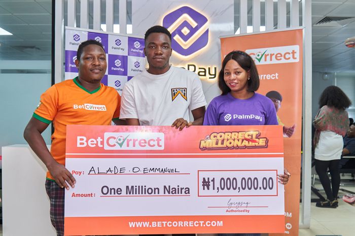 Alade Olamide Emmanuel, a PalmPay user, was recently announced as the winner of the grand prize of 1 million Naira in the ongoing Correct Millionaire giveaway hosted by BetCorrect.