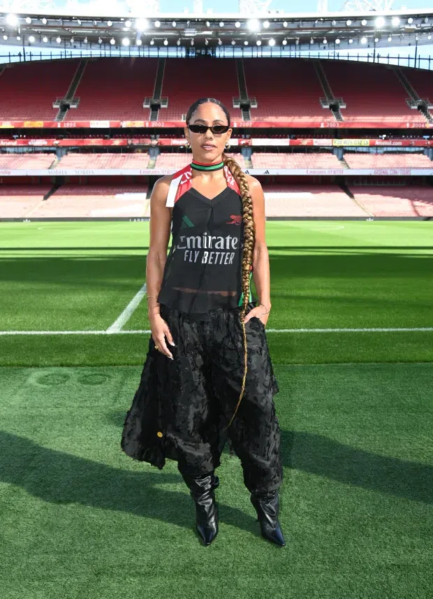 Scott, a former Arsenal full-back and current media personality, commanded attention in a sleeveless ensemble that echoed the away kit’s design.
