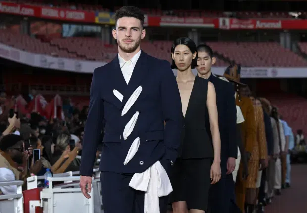 Meanwhile, Rice made his runway debut following a controversial suspension from the recent North London Derby, seizing the moment to embrace the fashion spotlight.