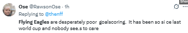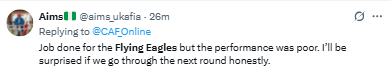 A fan said, “This Flying Eagles squad is a mess. How do you draw 2-2 with Kenya?