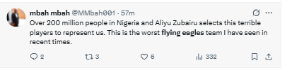 "The selection is questionable—where are the best U20 players from the NPFL? Zubairu needs to explain himself.” Another user, @EagleEye9ja