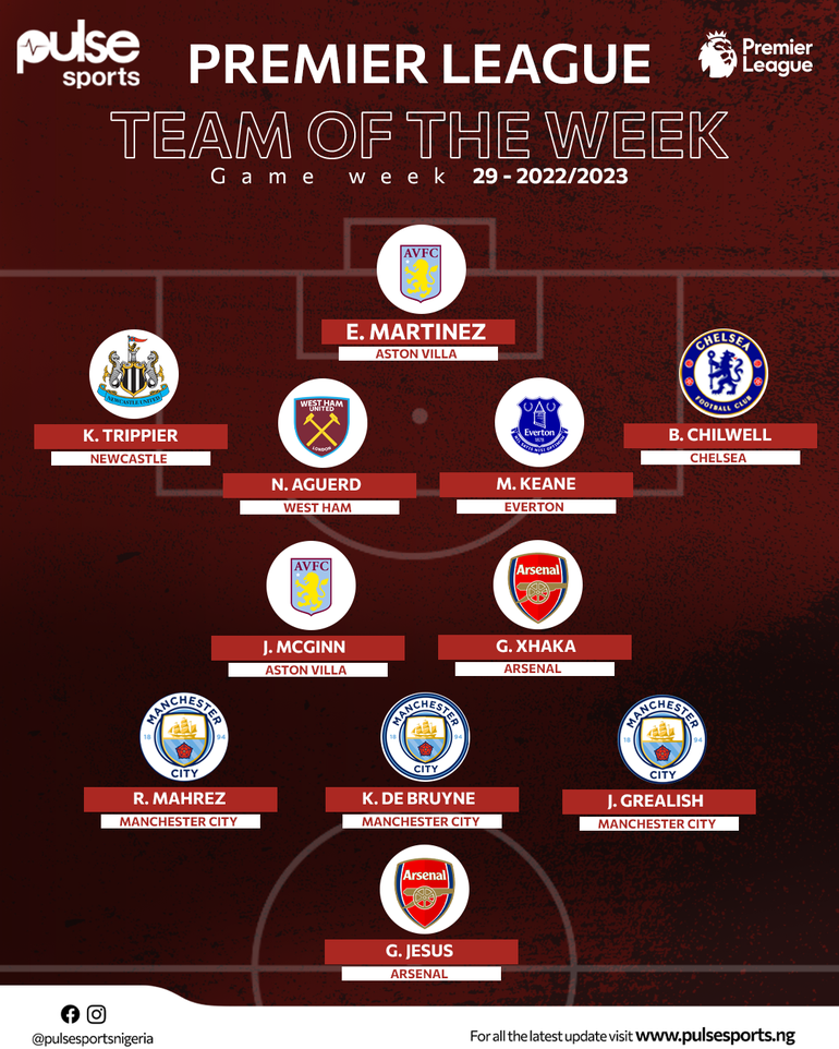 Team of week 29: Jesus back in style, Aguerd shines, Manchester City stars dominate