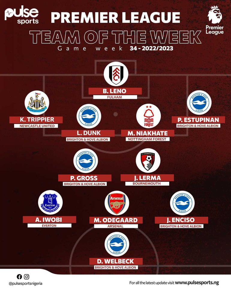 Team of Week 34: Odegaard sinks Chelsea, Brighton’s dominance, Iwobi takes responsibility