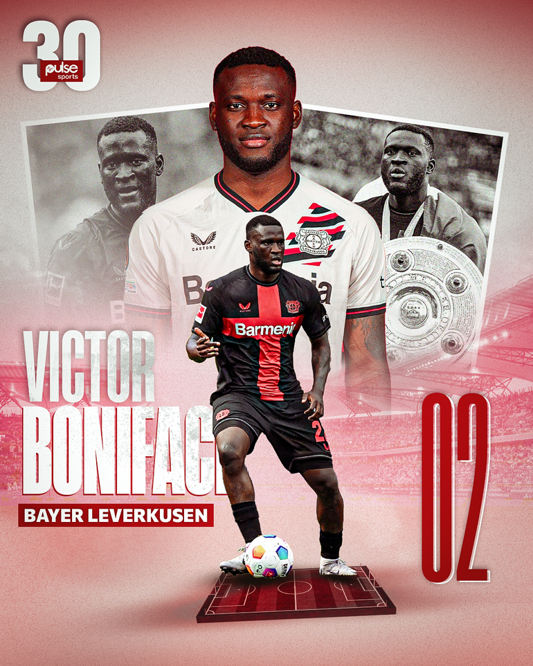 Victor Boniface is ranked number two on the PulseSports30 list after an impressive performance with Bayer Leverkusen.