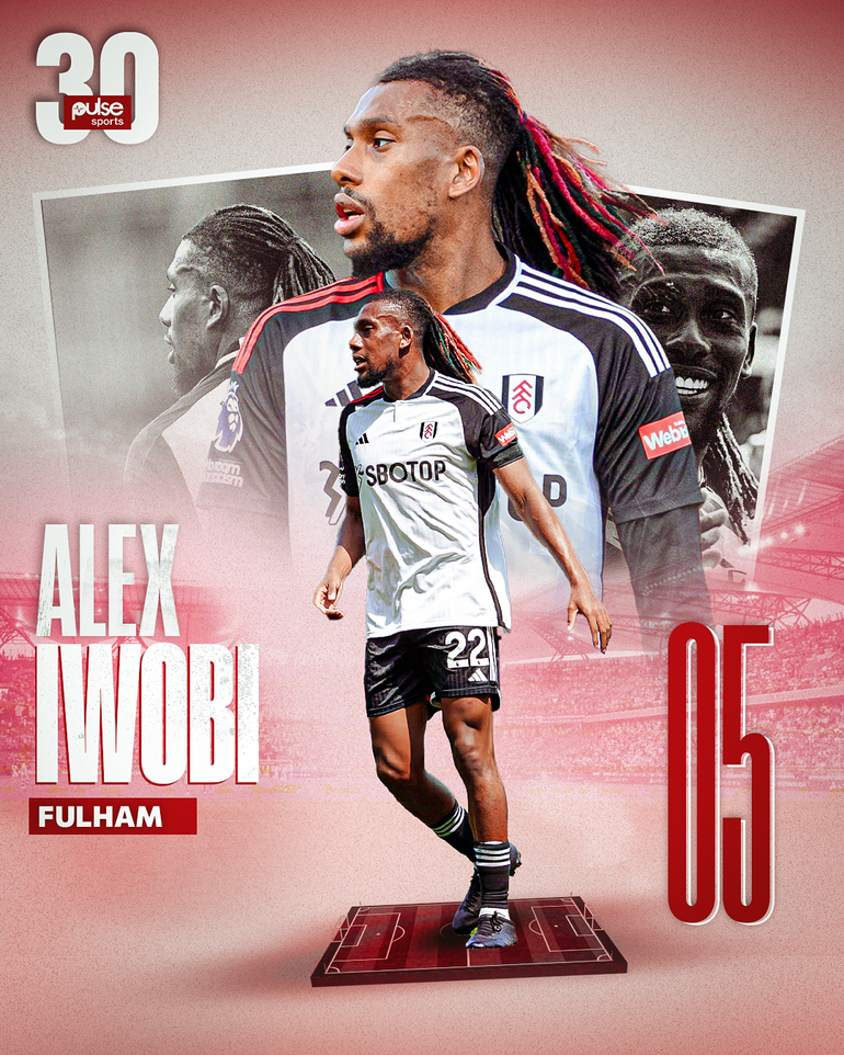 The midfielder, who is ranked 5th on the PulseSports30 list, played a total of 32 games for Fulham, averaging 25.8 (82%) accuracy per game. Iwobi scored six goals, and provided two assists across all competitions.