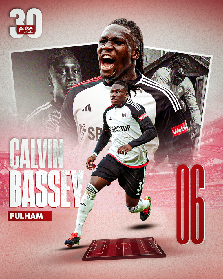 Calvin Bassey, who is ranked sixth on the PulseSports30 list, has been a defensive stalwart for Fulham and the Super Eagles, particularly during the AFCON competition.