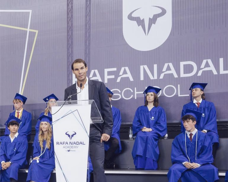 Rafael Nadal at a graduation ceremony at the Rafa Nadal Academy (Credit: Instagram/@rafanadal_school)