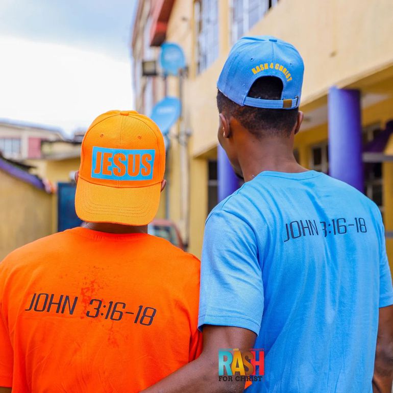 Ajibade has taken to social media to show off a Jesus Loves You Brand.