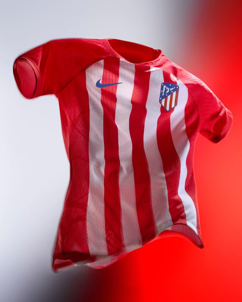 On the Nike Atlético 23-24 home uniform, the red stripes have a slight gradient effect.