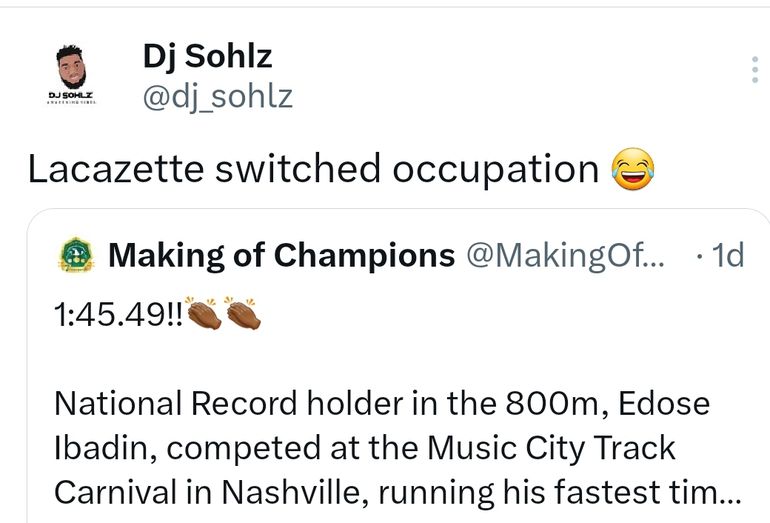 Nigerian record holder in the 800m Edose Ibadin, has gotten several online reactions and views as he's said to look like Olympic Lyon striker Alexandre Lacazette.
