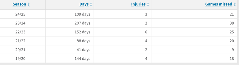 According to Transfermarkt, James has sustained 21 separate injuries that have caused him to miss 131 matches.