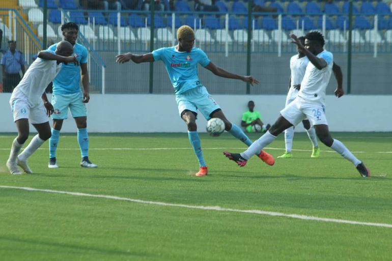 An interesting first half as both teams failed to record a goal, sky blue boys missed several chances that could have put them ahead of the Oluyole Warriors.