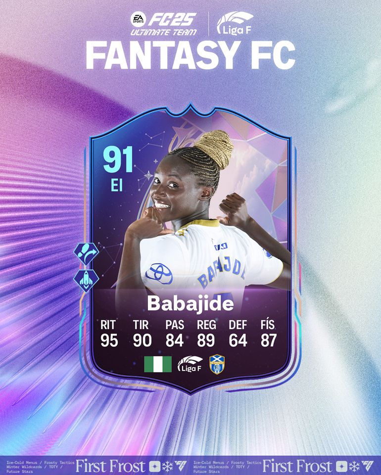 Super Falcons of Nigeria star Rinsola Babajide gets a rating boost with UD Tenerife on EA FC 2025 for fantasy.