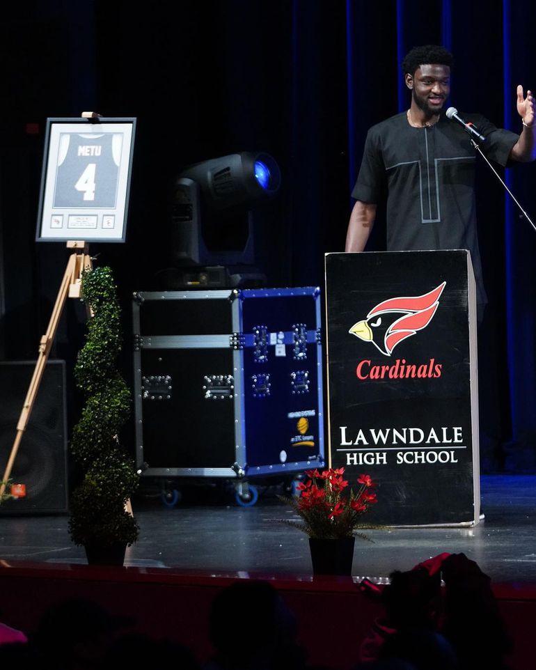 The 25-year-old Metu had his jersey retired at the Lawndale High School in California, United States of America (USA).
