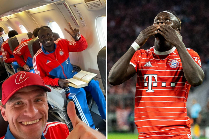 Mane was captured by his Bayern teammate and Germany international Thomas Muller as the duo looked all smiles ahead of their match on Sunday evening.