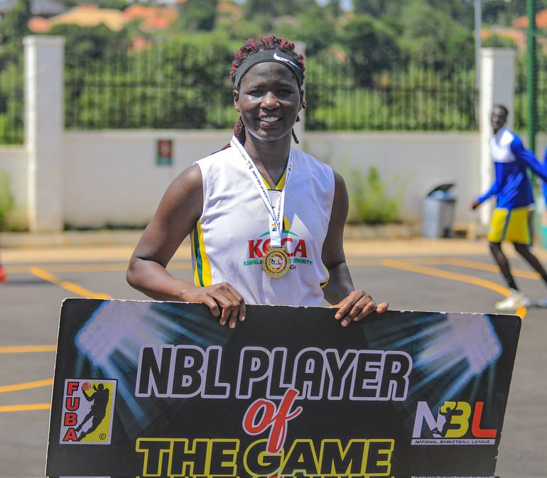 Her outstanding performance included 21 points, three rebounds, and four steals in their dominant 96-42 victory over the Nkumba Lady Marines.