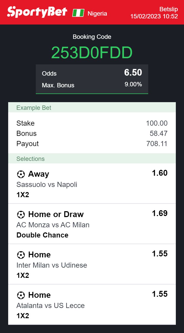 Sportybet odds for the Serie A