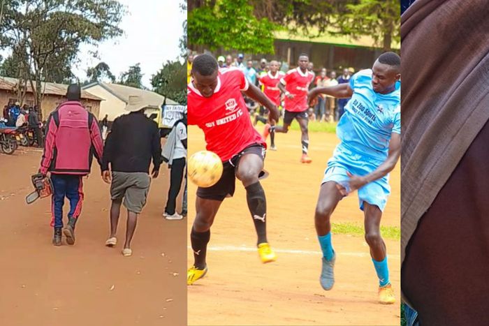 A power saw-wielding fan brought a shocking halt to a local football match between Soy United and Kona Rangers at Musemwa Primary School, resulting in injuries and the game's premature end.