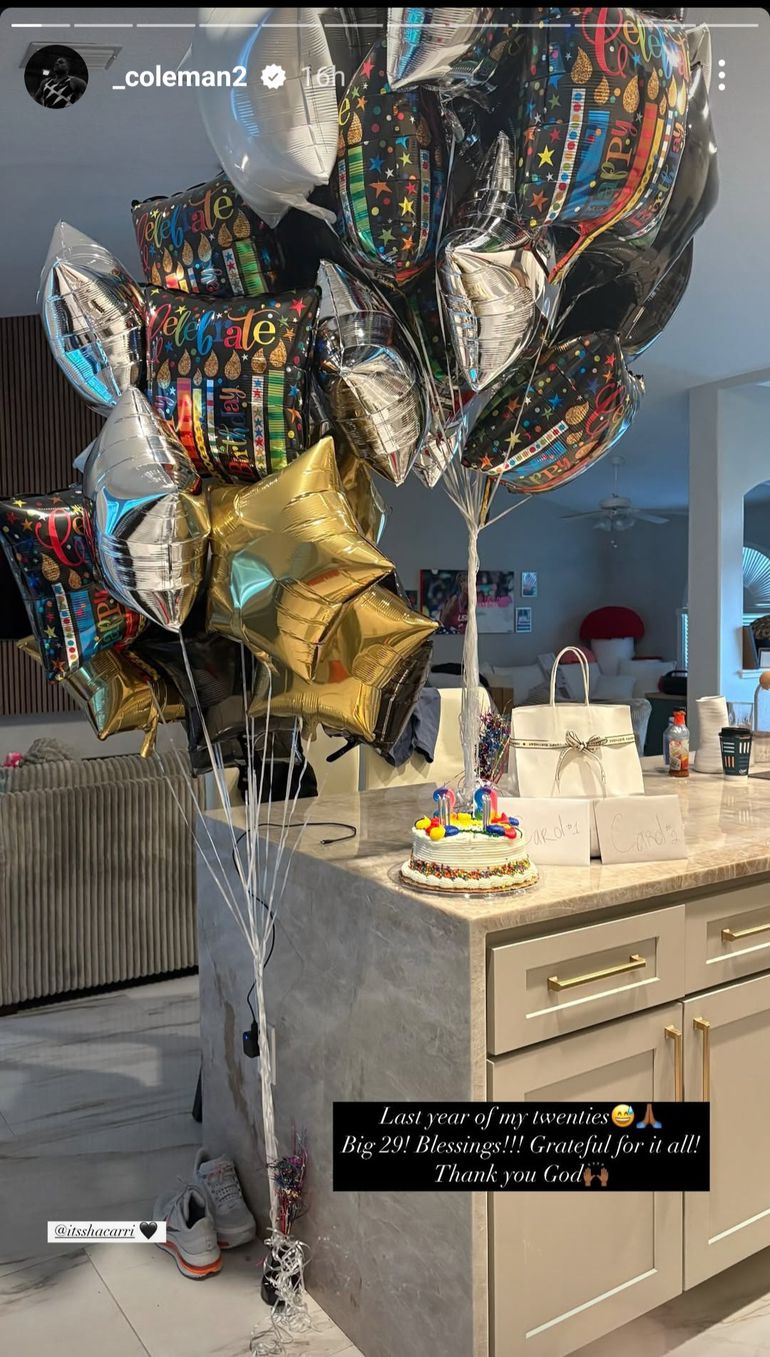 Coleman, turning 29, marked the occasion with an Instagram post, writing, “Last year of my twenties. Big 29! Blessings!! Grateful for it all! Thank you, God.”