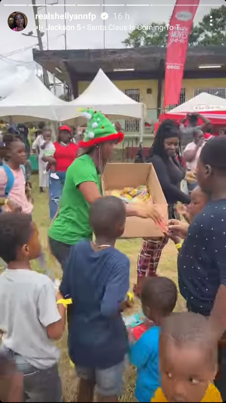 In a series of videos shared on her Instagram stories, the five-time world 100m champion was busy and excited being Santa Claus as she performed her duties to perfection for the kids.