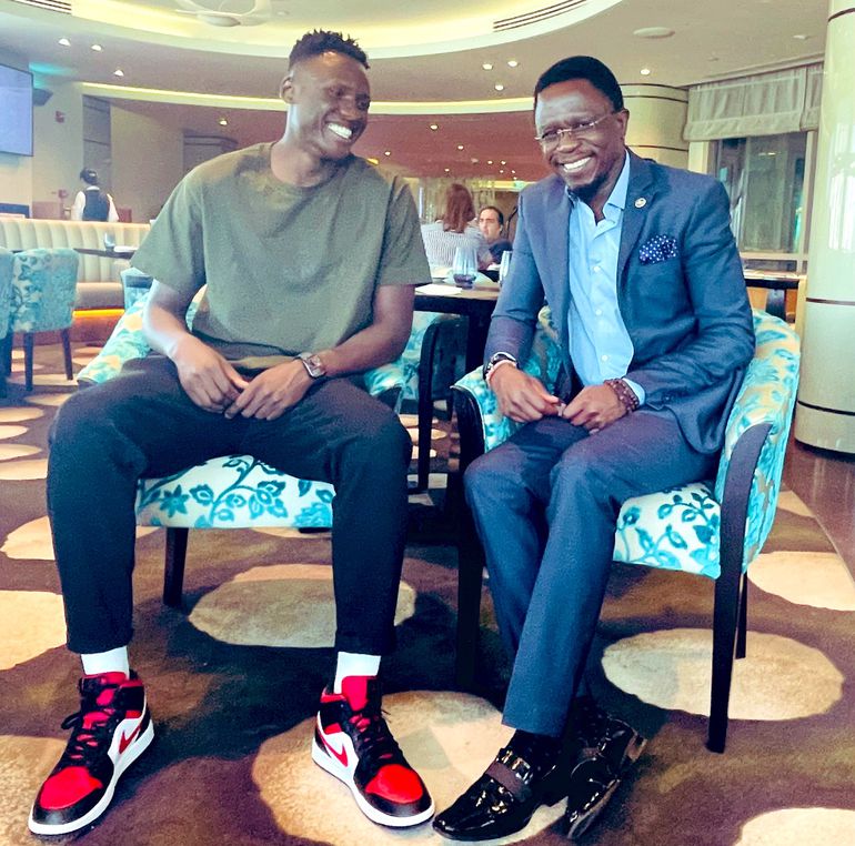 Cabinet Secretary for Sports, Heritage and Culture in Kenya, Ababu Namwamba (left) and FIFA president Gianni Infantino (right).
