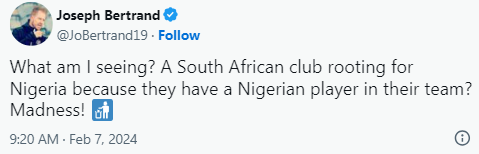 “As the Chairman of Chippa United FC and as a proud South African, I find myself in a unique position during this 2023 AFCON tournament in that our very own Nigeria international Stanley Nwabal has been a revelation, his performance for the Nigerian National Team has caught the eyes of the globe, earning him and our cub international claim,” he said.