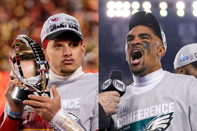 Patrick Mahomes (L) goes up against Jalen Hurts in the Super Bowl quarterback match up