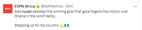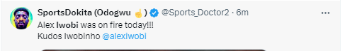 Super Eagles midfielder Alex Iwobi received praise on social media.