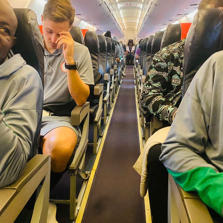 The Super Eagles current situation at the airport in Libya || Photo: Pooja Media
