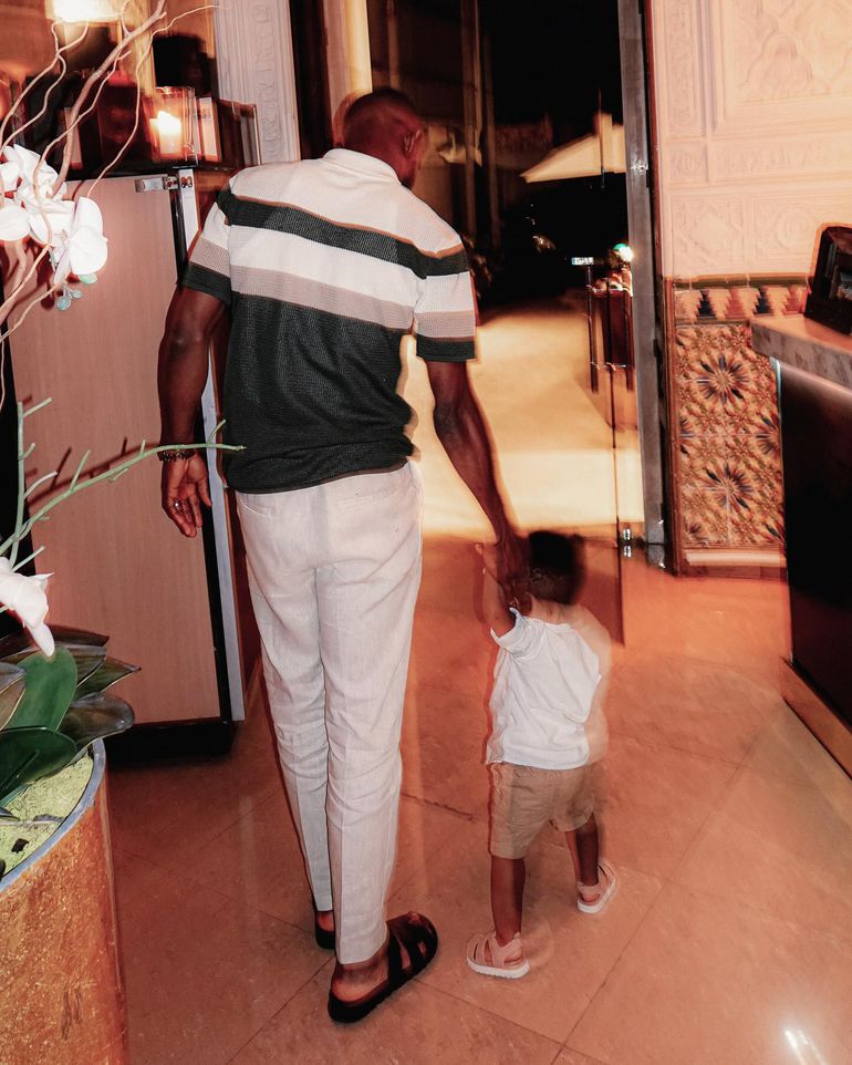 Onyeka walking hand-in-hand with his son the photos have gone viral on social media.